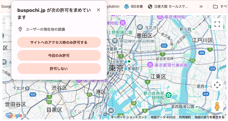 HTTPS環境でのみ動作します。PC・スマホともに位置情報の許可が必要です。